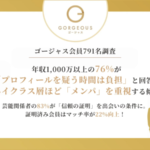「ゴージャス」では、ご自身の魅力を証明できる「職業証明・年収証明」機能を提供しており、実際に証明を完了している会員は、非証明会員と比べてマッチ率が22%高いという結果が出ています(※直近3ヶ月の利用会員データに基づく)。