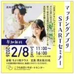 今回の「マッチングアプリSTARTセミナー」は、オンラインとオフライン(ちより街テラス)の併用で開催され、20歳以上の独身男女を対象に、無料で提供されました。セミナーの主な内容は以下の通りです。