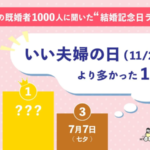 ランキングには、「いい夫婦の日(11月22日)」といった定番の語呂合わせに加え、「2月5日(ニッコリの日)」など、新しい語呂合わせの日付もランクインしています。従来の定番にとらわれず、自分たちらしい意味を込めた日を選ぶ選択肢が、少しずつ広がりつつあることが読み取れます。