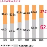 『妊活白書2025』の調査結果で、まず私の目を引いたのは、若年未婚男女(18〜29歳)において、「将来、子どもを望まない」と回答した女性の割合が64.7%となり、初めて男性(60.7%)を上回ったという点です。